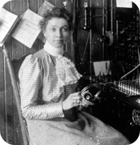 Miss Ida Gardner, first operator in Winchester (Ontario) at switchboard, around 1897