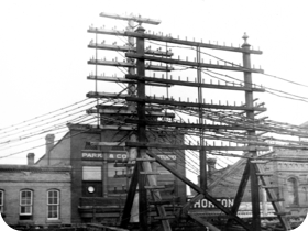 The number of phone lines grew from 2,100 in 1880 to 78,195 in 1905, thanks to the tremendous efforts of the linemen who installed over 14,000 km of pole lines and 60,000 km of transmission cables. That doesn’t include the first underground cables, which were laid in Toronto for the first time in 1889.